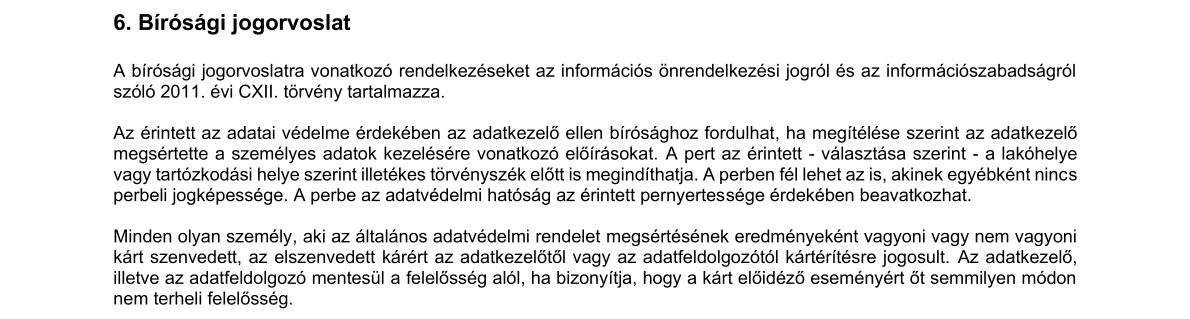 Adatkezelési tájékoztató - Kapcsolatfelvétel