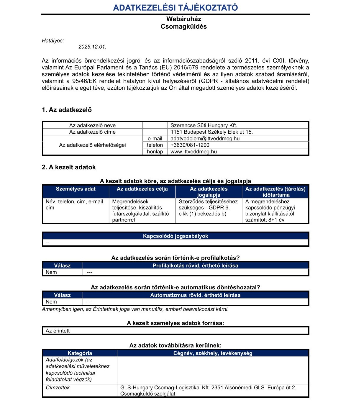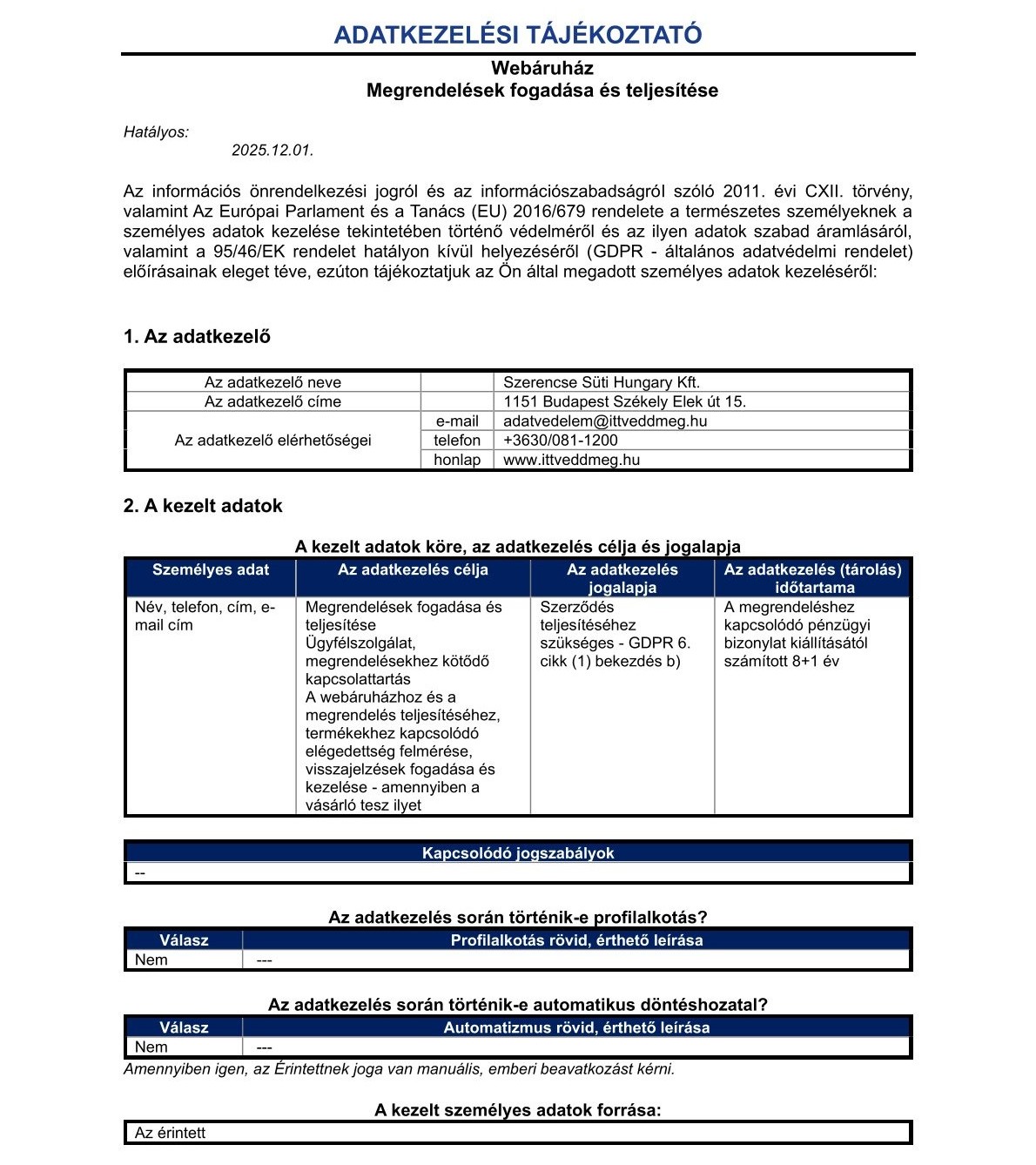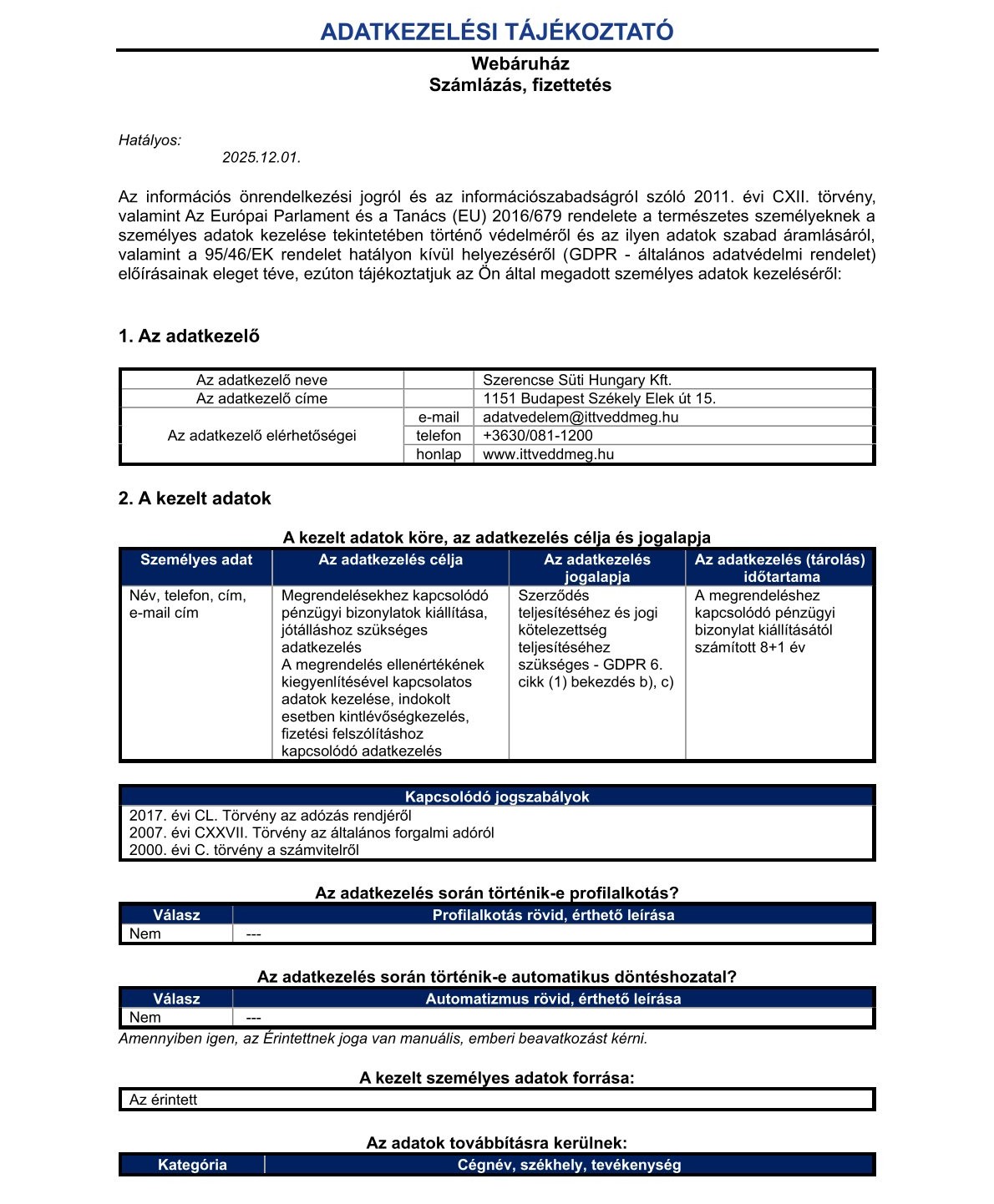 - Édességek, nassolnivalók
